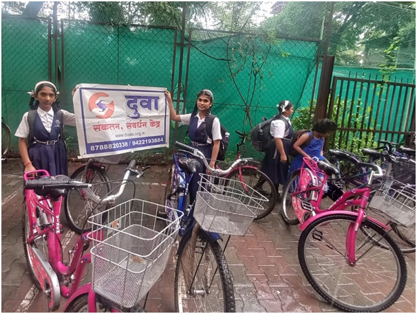 दुवाच्या मदतीने एका सहृद कुटुंबां कडे असलेली सायकल गरजू विद्यार्थिनी ला देण्यात आली